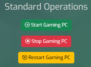 Once logged in, you can start, stop and reboot your Cloud Gaming PC: